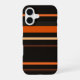 This phone case features a striking black background with bold orange and beige stripes, creating a modern and stylish design. Perfect for those who love minimal yet eye-catching patterns.