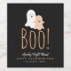 Cute halloween wine label with silly funny ghosts and "BOO!" text in black, white and orange. Personalise with drink name, short greeting and name. Great for Halloween party or gift
