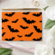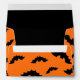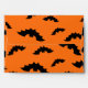 Black and orange Halloween envelopes with spooky bats pattern. Scary design for party invites, costume party, Birthday and more.