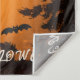 Halloween themed wall tapestry that features a black and orange image of a spooky ghost and scary bats on a night with a full moon along with text that reads HAPPY HALLOWEEN. Fun to hang up for a Halloween party.