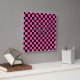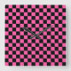A vibrant checkerboard pattern of black and bright pink squares, creating a visually striking and bold contrast. The design is uniform and symmetrical.