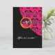 BLACK AND PINK DAMASK MONOGRAM,red ruby,fuchsia Invitation