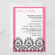 Yes, you can print on the back of your invitation for free! Most designs already have a corresponding design on the back that can be personalized using the Design Tool and going to Layers. This is a great way to communicate more information or further personalize your Black And Pink Damask Wedding Invitations. The option is really up to you.