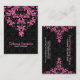 Elegant black damask and pink floral lace, business card template. For Event designers, wedding planners