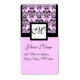 BLACK AND PINK SQUARE DAMASK MONOGRAM LABEL