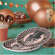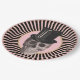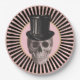 This paper plate features a black and pink radial stripe around the edge with a pink center and a gold border. A skull wearing a top hat is "dead" center! Perfect for Halloween or any other spooky gathering.