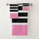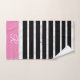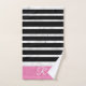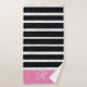Black and Pink Stripes Marble Style Monogram Bath Towel Set