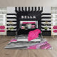 Black and white with hot pink swirls mix together to create a fun accent. This rug pairs well with other home decor items in my Glamourous Black and White Bedroom collection.