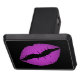 Purple violet gradient or omber style digital art lipstick print of a kiss. Black background. Add a custom text message.