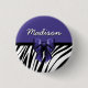 Black and Purple Ribbon Bow Zebra Print Button