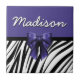 Black and Purple Ribbon Bow Zebra Print Ceramic Tile