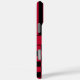 Customize this iPhone 16 pro max case with black and red stripes on the top half and black and red checkered pattern on the bottom half with your name in a modern CAP font in the middle in black on red. It's preppy, trendy and bold - definitely cool!