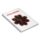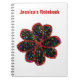 This awesome customizable notebook features a black flower with a red outline filled with multicoloured patterns that make the flower look like it is glittering. The image was created using graphic design and is both beautiful and delicate. There is customizable text at the top of the notebook allowing you to personalize it for yourself or give it as a gift.