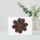 This fun postcard features a black flower with a red outline filled with multicoloured patterns that make the flower look like it is glittering. The image was created using graphic design and is both beautiful and delicate.