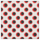 This striking geometric pattern features bold black circles outlined in vivid red, arranged in a repeating polka dot layout on a crisp white background. The strong contrast between red, black, and white creates a dramatic, eye-catching effect that feels both retro and modern. The layered look of the dots adds depth and dimension, giving the design a playful yet powerful presence. With its high-contrast palette and rhythmic repetition, this polka dot pattern captures attention and delivers timeless graphic style.