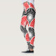 Black And Red Chinese concentric Semi Circle Wave Pattern leggings