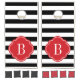 Black and Red Stripes Monogram Cornhole Set