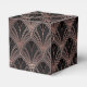 Elegant favor box featuring rose gold and black art deco pattern.