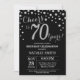 Plain white envelopes are included with paper invitations and will come to fit the invitation size you select. If you don’t need the envelopes, you may choose to not receive them by selecting the dropdown below "Envelopes" and choosing "None." If you’d like to have a design on your envelopes, you can browse all of these available envelopes to find the design that complements your Black And Silver 70th Birthday Diamond Invitation.