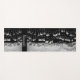 On this stylish yoga mat is a black and silver gypsy hip scarf with faux coins and beads along with a black ribbon where you can personalize your mat. Hippy chic vibes.