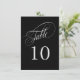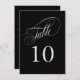 An elegant table number card in black with silver text featuring beautiful calligraphy script text. This design in the 4 1/2-inch by 6 1/2-inch size is a wonderful choice for weddings, banquets, dinners, luncheons, and parties that use black and silver in the color scheme. To create table numbers for each table, personalize a single card for Table 1 and add to cart, then personalize a table card for Table 2 and add to cart, and so on until you have a card for each table.
