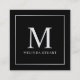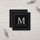 Elegant stylish design featuring monogram, name and details in silver professional font style with silver square border on black background.