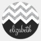 Black and Silver Glitter Print Chevron and Name Classic Round Sticker