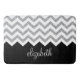 Black and Silver Glitter Print Chevrons and Name Bath Mat