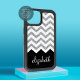 Black and Silver Glitter Print Chevrons and Name iPhone 15 Case