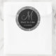 Black And Silver Glitter Wedding Monogram Classic Round Sticker