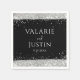 Black and Silver Wedding Party Napkins. Faux silver glitter graphics. Script font highlights with easy to read serif name font. Easy to adjust for your own wedding needs. Personalized wedding thank you favor tags.