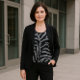 First-time purchasing one of my a design from my own shop for myself. Was thrilled with the lovely fabric (nice, soft, smooth like cotton, but it’s poly!) Fit like a dream and sits nicely in the sides and hips. Loving the smooth, nicely sewn trim at arms and neckline (see pix). Thanx for a job well done! — Di. Also thrilled that the black IS black which looks great with the snappy white fabric—the pattern is well-printed and very flattering on me. The subtle pussywillows in the design are perfect. Kudos to the print company and sewists! — Di