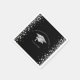 This modern design features a graduation hat and confetti in silver on a background of black with white text.