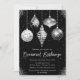 Host a festive and stylish ornament exchange with this luxurious black and silver invitation. This design features a rich black background adorned with shimmering silver accents and five intricately illustrated hanging ornaments, each showcasing floral, snowflake and geometric patterns. This elegant layout sets the tone for a warm and celebratory seasonal gathering. Perfect for holiday swaps, office events or cozy get-togethers with friends and family.