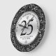 Black and luxury shiny silver swirly circle 25th wedding anniversary wall clock design. Silver wedding anniversary. Custom black typography.