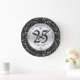 Black And Silver Swirls Circle Frame 25th Wedding Large Clock