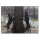 This cutting board features a pair of gorgeous black and tan coon hounds treeing on the river.