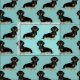 Black and Tan Dachshund dog light blue Fabric
