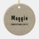Lightweight, smooth, pure white ornament with nice sheen. Perfect size to be seen from across the room ... and to attract closer inspection! Price was great for ordering enough for the whole family! Clear, bold black design just as requested. Matches the order exactly. Just so nice!