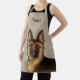 Destei's original cartoon illustration of a black and tan color German Shepherd breed dog's head. The background color is beige with a decorative texture. The texture can be removed and the background color can be changed to any other color, if so wished. There is also a personalizable text area for a name or other custom text.