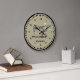 This clock face is printed with a vintage style sewing machine image in a black and cream dingbat pattern on a neutral background. Personalize it with name or other text for your favorite sewing or quilting artist.Nice accent for any sewing or crafting room. Your choice of sizes.