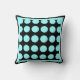 black and teal modern pillow teal circles on a black pillow