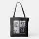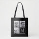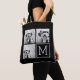 Black and White 3 Photo Collage Custom Monogram Tote Bag