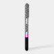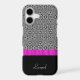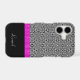 The abstract black and white optical design on the upper two thirds of this case, paired with the black bottom third and a bright pink ribbon separating the two makes a uniquely elegant case! Add your own name as personalization, and the package is complete. **Please note: the image is printed on the case and contains no actual fabric or ribbon.**