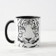 Fantasic abstract black and white illustration of a Bengal Tiger head on a clean white background with black handle and interior to match the drawing.