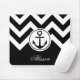 Black and White Anchor Pattern Mouse Pad