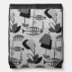 This Black and White Atomic Pattern Drawstring Backpack is black and white and retro all over. The design features a replica of a vintage 1950's fabric, as seen through the lens of a black and white television program. The modern art shapes include everything from the abstract to the fish! There are small fish swimming to the left, while blowing bubbles. There are larger black and white fish swimming to the right, while blowing grey bubbles. And there are dark grey jellyfish, who don't seem to be doing much of anything. This is the perfect design for anyone who loves fish, fabric, and items with a retro feel. This black and white design proves that you don't have to have color to be colorful. It's a kitschy blast from the past!
