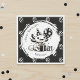 A cute axolotl and birthday balloons themed personalized birthday party paper napkins with black and white balloons with polka dots and an axolotl with birthday gifts and balloons.
