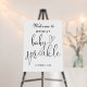 This black and white elegant script baby sprinkle shower welcome sign can be personalized with all your special celebration information. Designed by Thisisnotme©