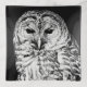 A striking close up look at the beautiful face of a wild Barred Owl, catch lights in his dark eyes. The photograph is a black and white version of my original wild bird photography. Owl lovers will adore this detailed owl portrait!